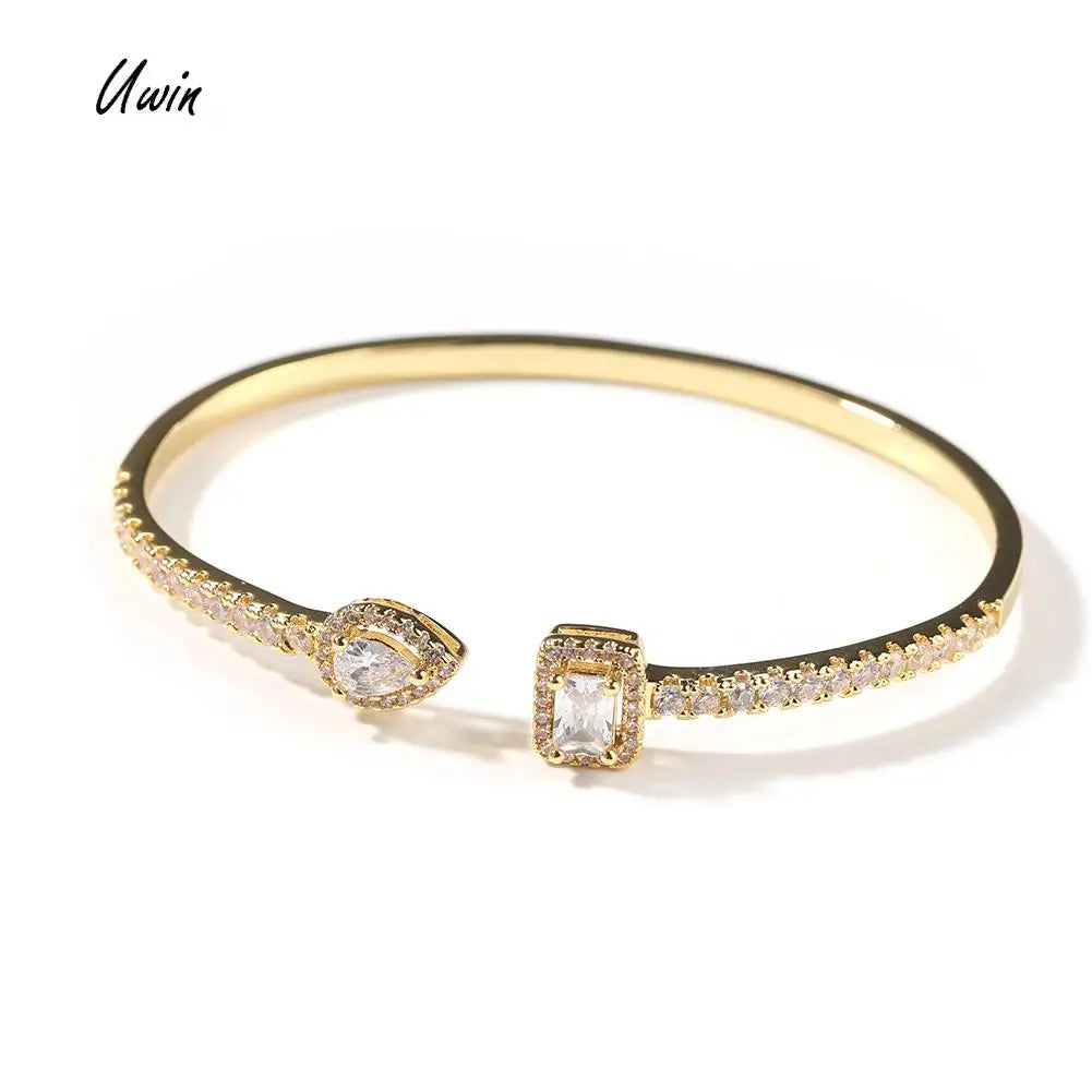 Hot Sale Design Bracelets Women Classic Simple Style Bangles Jewelry Women Brass Zircon Diamond Open Bangle Wholesale Price