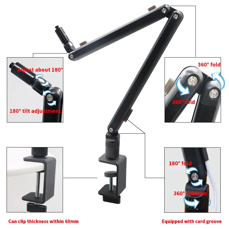 Professional Podcast Desk Microphone Mounts for Studio With Roundable Microphone Gaming Stand and Flexible Clamp Design