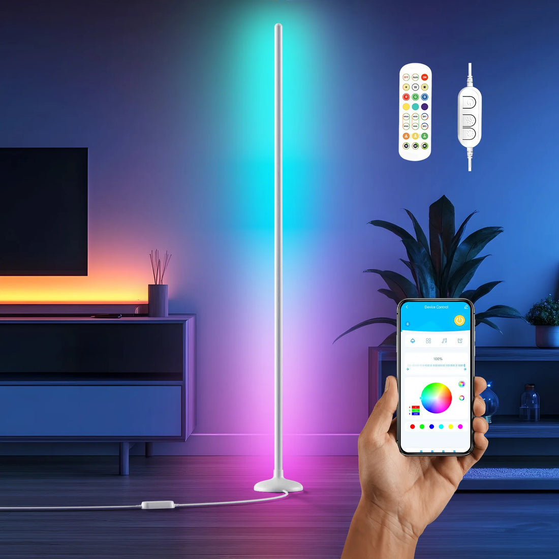 Modern RGBIC Splicing LED Floor Lamp for Bedroom Living Room Small Night Light E27 for Gaming Atmosphere Decor Pickup