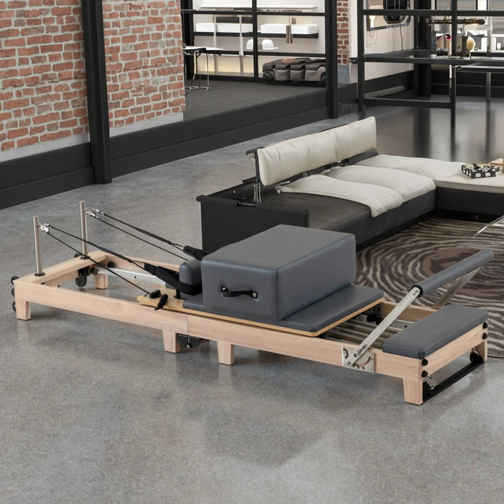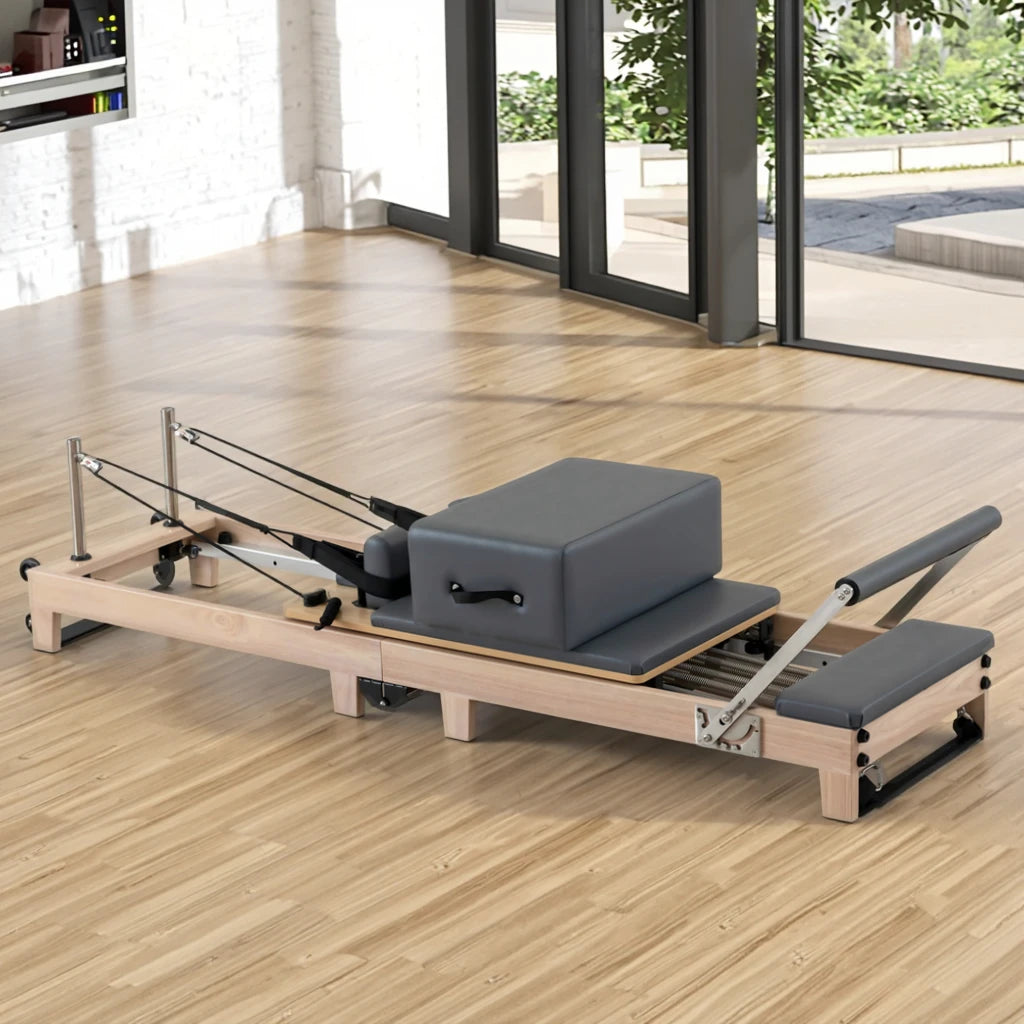 Premium Portable Pilates Reformer Foldable Bed Durable Oak Wood for Body Gym Applications Space Saving Box