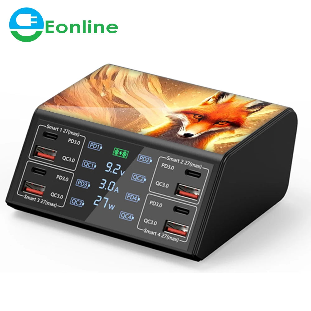 EONLINE 3D Nine Tailed fox 100W QCPD3.0 USB Charger Wireless Chargers Quick Charge 8 Port Fast Charger Charging Station for IPho