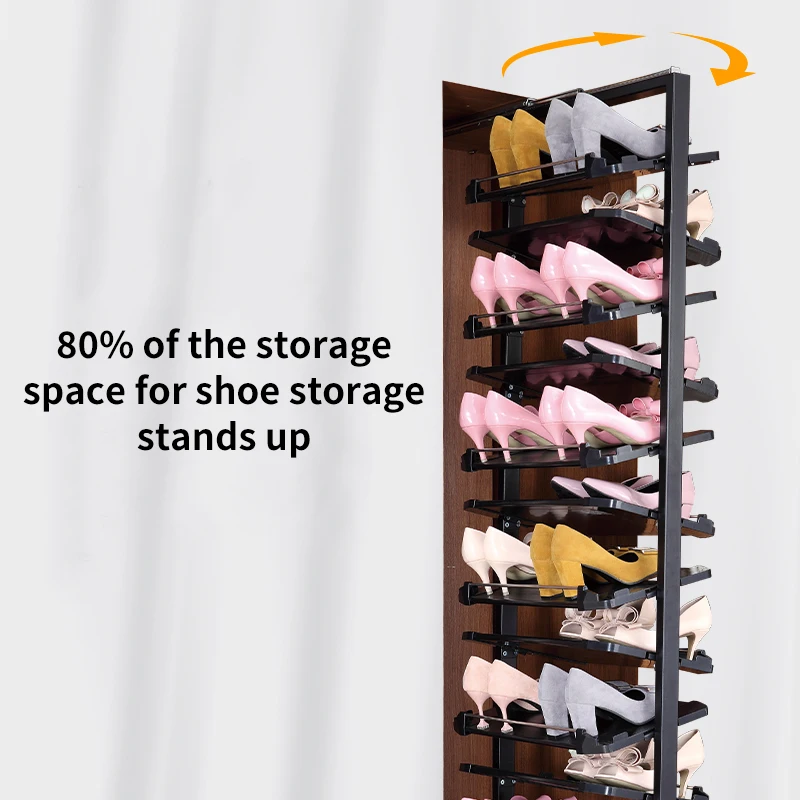 1.The AOLISHENG 360 Degree Cloakroom Cabinet provides efficient storage solutions with its multi-functional rotating shoes rack. Ideal for various applications such as household, kitchen, bathroom, bedroom, living room, and outdoor spaces, this versatile shoe rack organizes your footwear in a stylish manner.