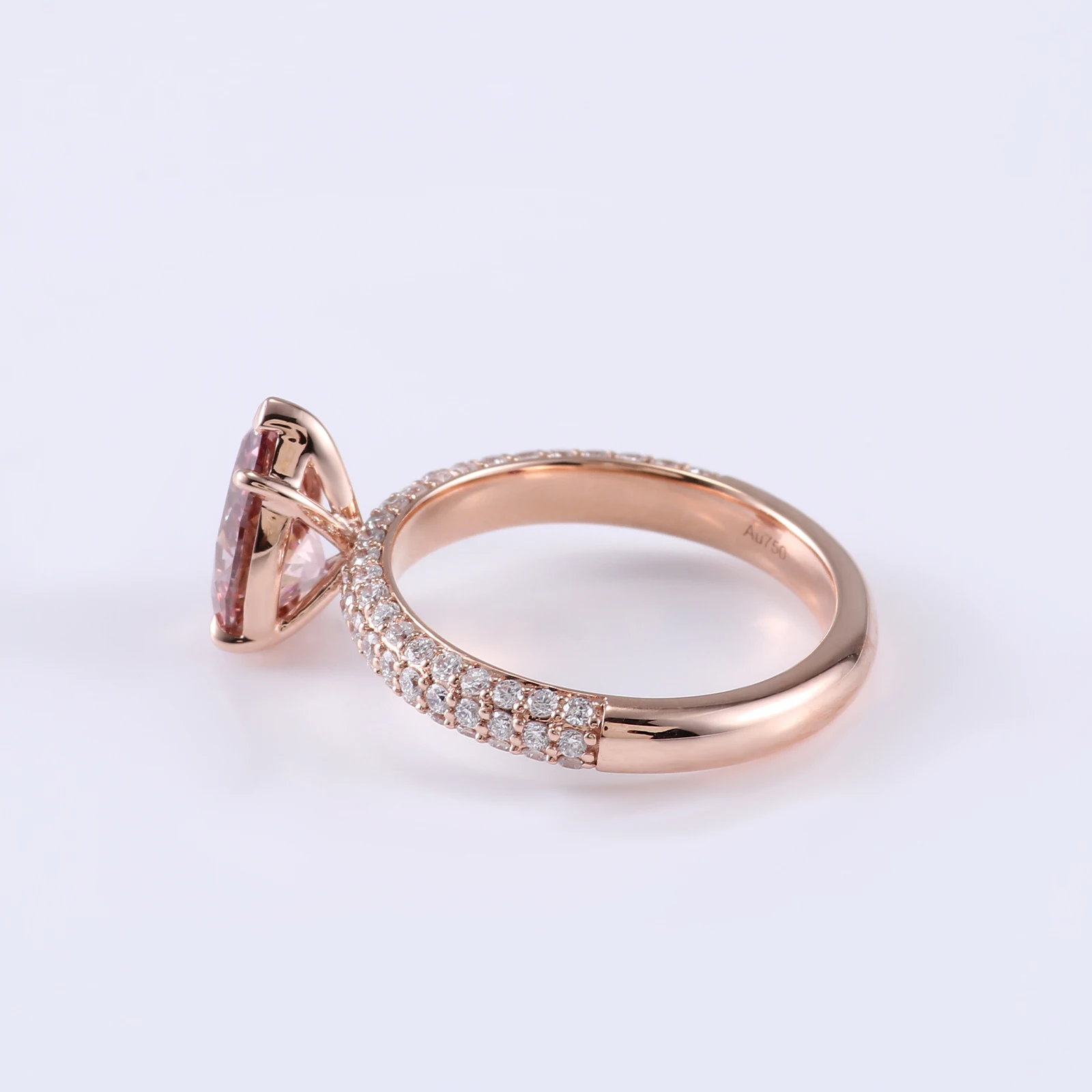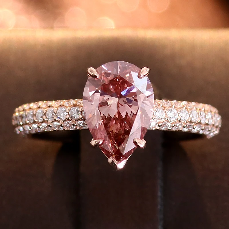 Fine Jewelry Rings Pear Cut pink Color 1 Cara Lab Diamond 18k Yellow Gold Dainty Ring with Side Stones Ring for Woman Jewelry