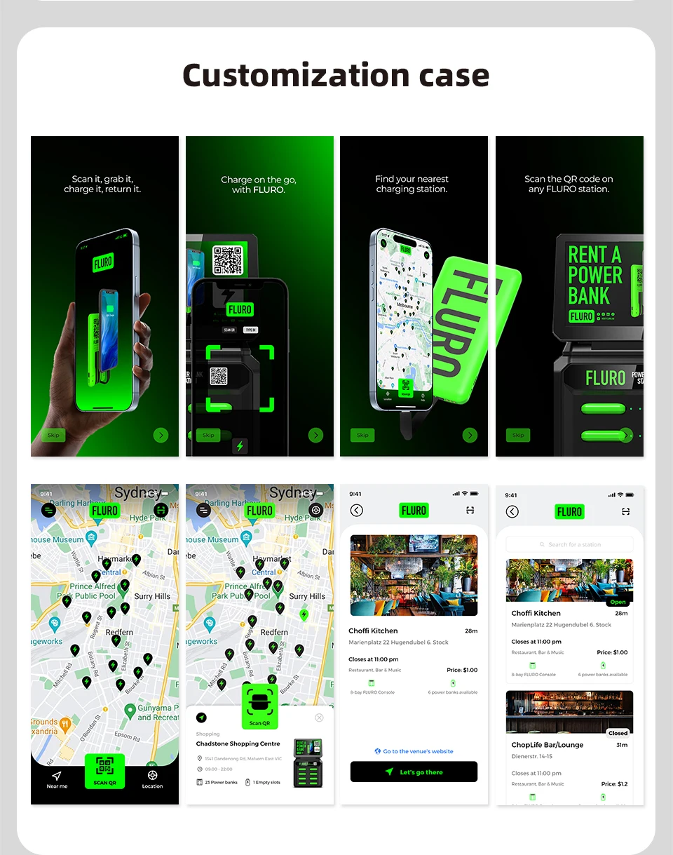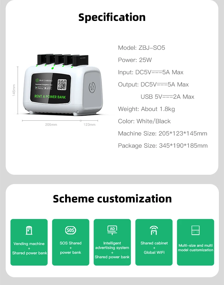 Answer:1, Support 4G and Wifi connection. 2, The screen can show the user how to use the power bank rental machine 3, You can